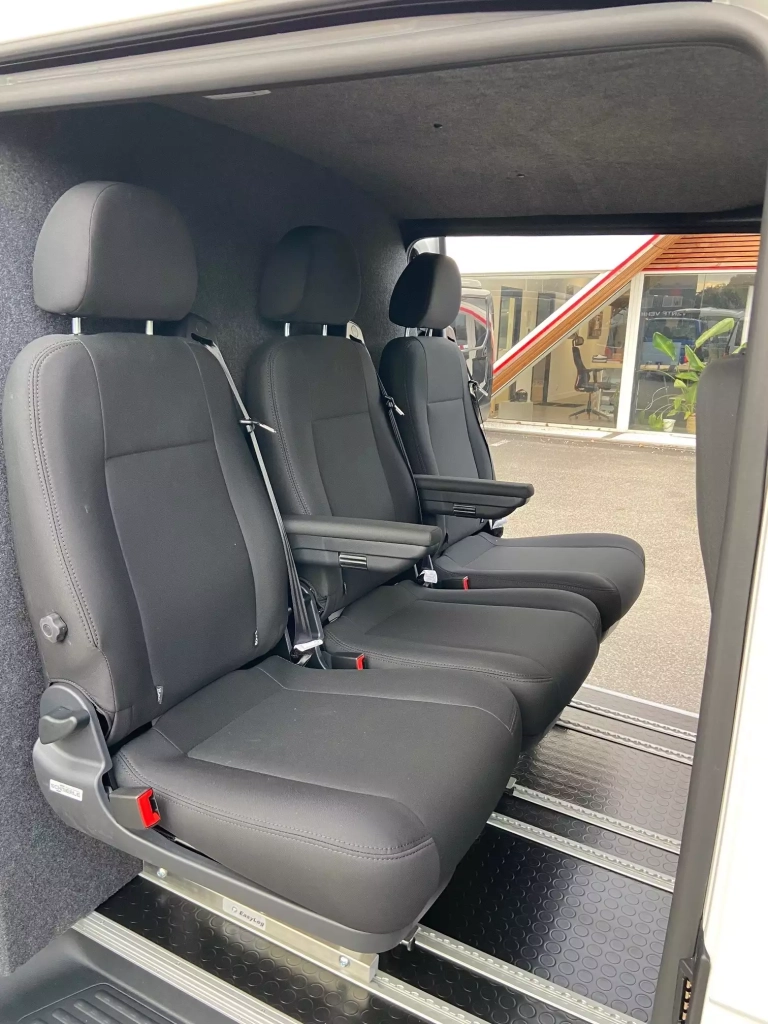 Aménagement CABINE APPROFONDIE répondant aux critères de l’homologation CTTE N1. Cette gamme professionnelle est configurable de 2 à 5 places assises tout en vous offrant une zone de transport de marchandise délimitée par une cloison d’arrêt de charge démontable mais obligatoire pour le respect de la sécurité des passagers. Les sièges individuels coulissants et amovibles “easy-one-clic” ne pèsent que 27kg et vous permettront de profiter d’une extrême modularité au quotidien. L’aménagement PRO est compatible avec les véhicules disposant d’une porte latérale droite mais aussi avec une seconde porte latérale gauche.